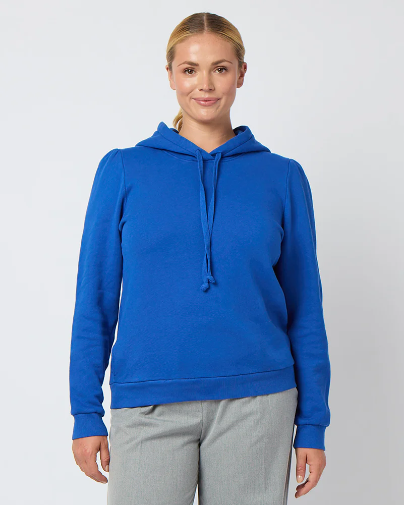 A cozy sweatshirt fit to flatter DD+ cups with a lower neckline (don't you hate it when hoodies choke?), slim body and puff shoulders proportionate to accentuate your femininity. Hidden side pocket for a key or a lipstick on-the-go. Perfect for day or night. Finally, a sweatshirt that doesn't make us look bigger than we are!