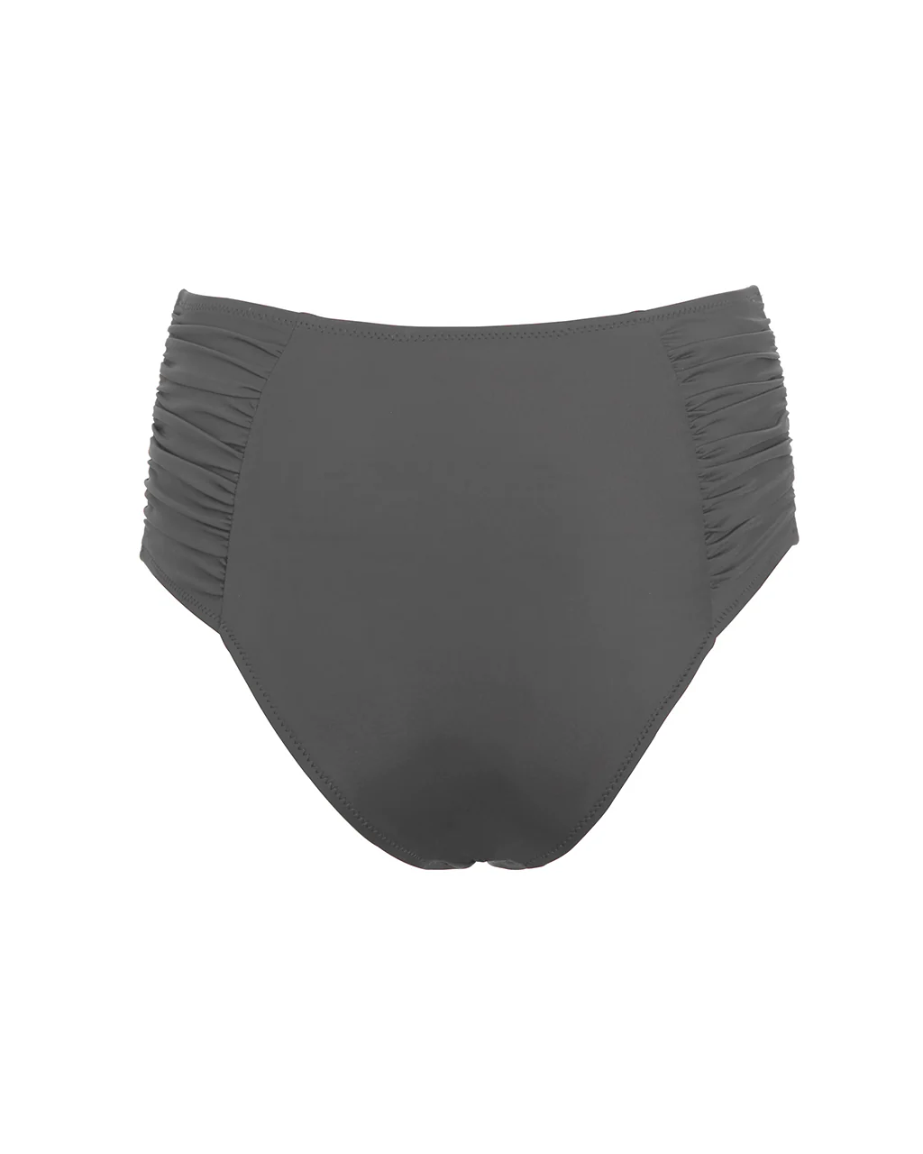 High waisted bikini bottom that lies at your belly button. Hip-flattering ruched side panels with mid back coverage. Power mesh lining on entire bikini for sculpting. Discounted because our care content label did not come out as planned but we didn't want to delay launching swim.