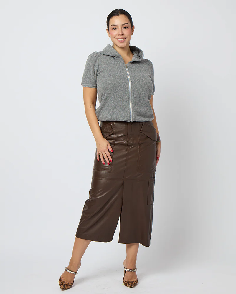 Elevate your summer wardrobe with our Short Sleeve Puff Shoulder Zip-Up in lightweight French Terry ensuring you stay cool and comfortable no matter the temperature. Tailored to accommodate a larger bust yet taken in at the waist to create shape with subtle puff sleeves for a feminine flair.Â