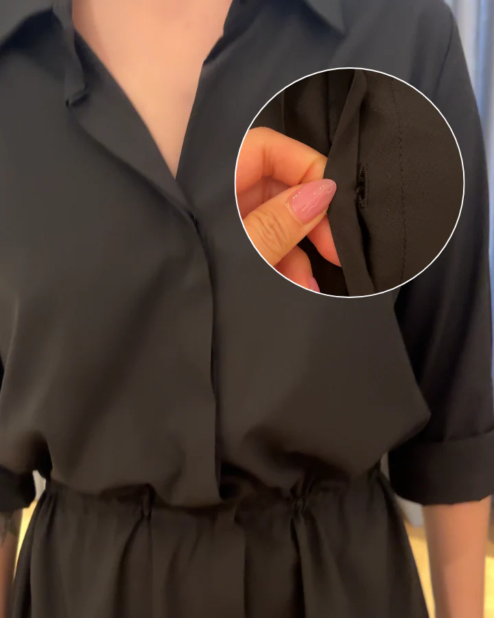 Your favorite Classic Button Down in a mini dress. Versatile to wear loose or cinched with an inner drawstring, plus our signature patented hidden button to keep the shirt closed across our chest. Perfect to wear to work or for every day.