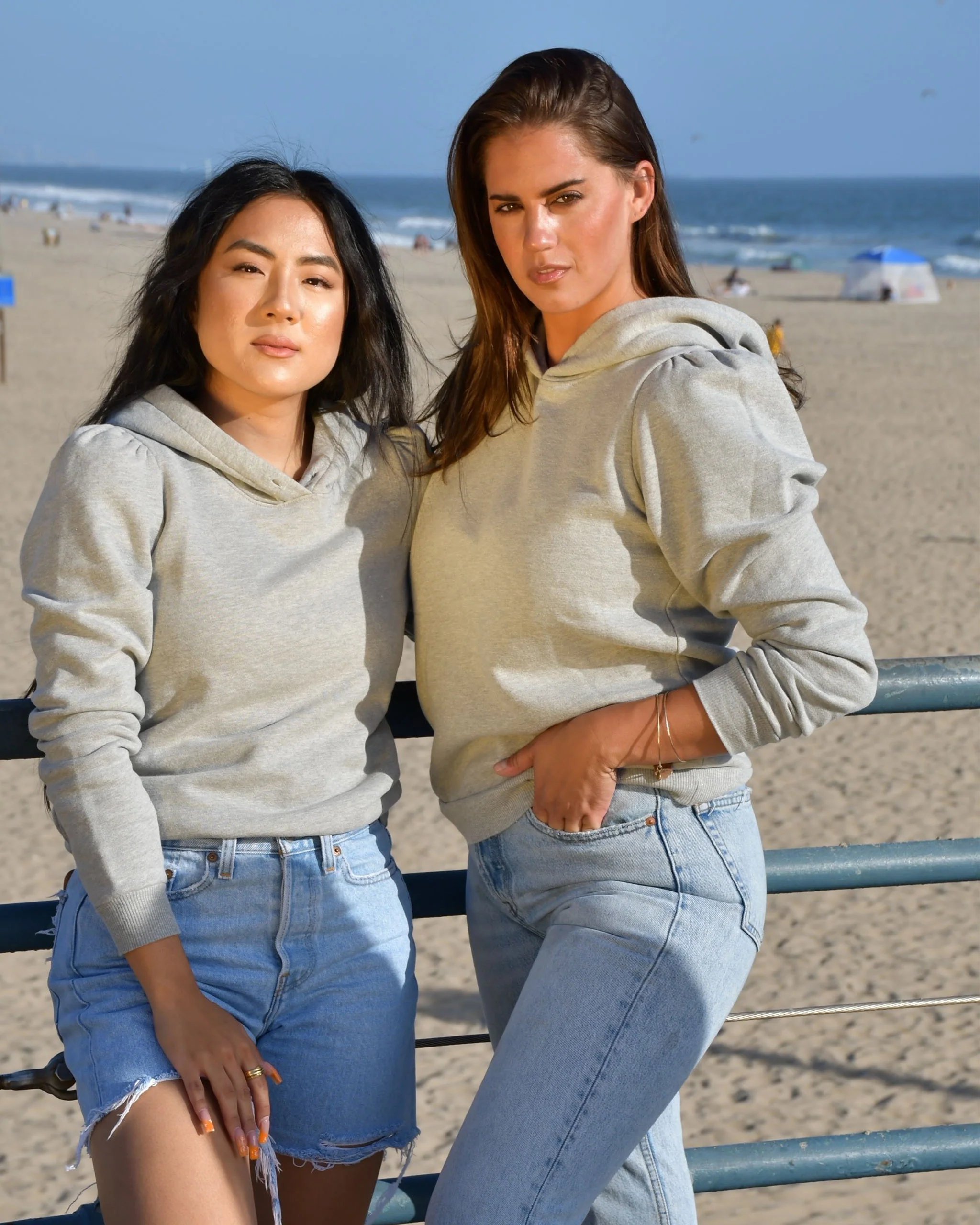 A cozy sweatshirt fit to flatter DD+ cups with a lower neckline (don't you hate it when hoodies choke?), slim body and subtle puff shoulders that accentuate your femininity. Hidden side pocket for a key or a lipstick on-the-go. Perfect for day or night. Finally, a sweatshirt that doesn't make us look bigger than we are!